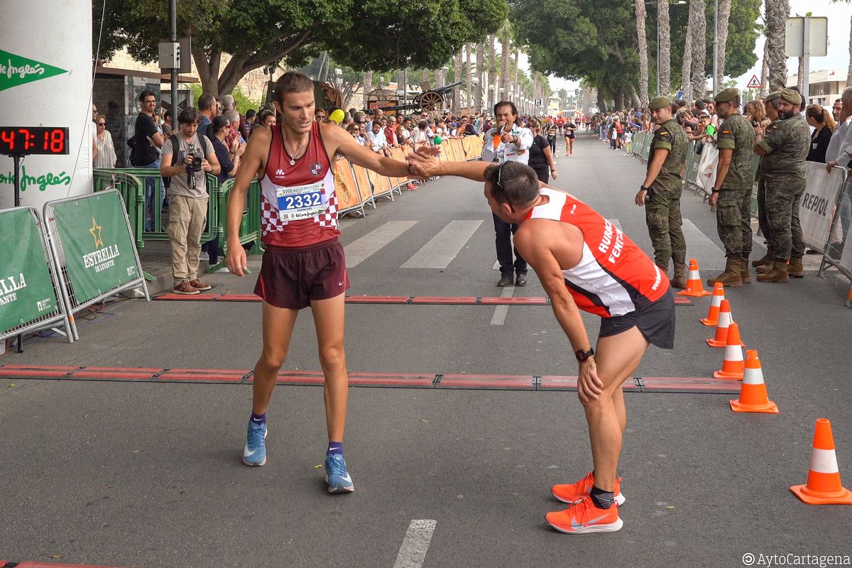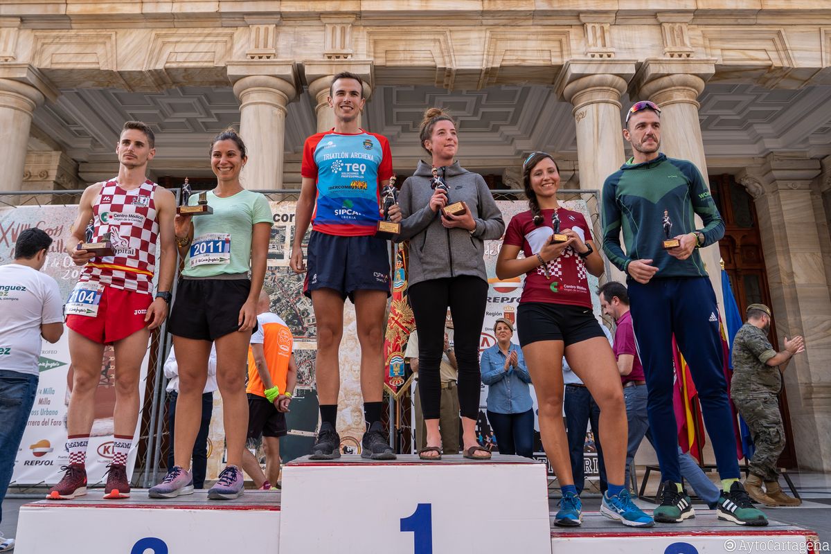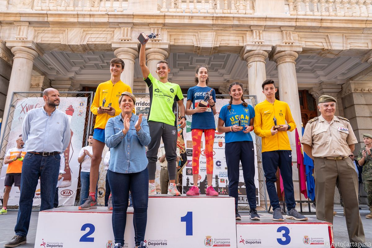 Para terminar la mañana dieron salida las dos pruebas reinas, el Cross Urbano de 6 kilómetros y la Carrera del Faro de 14 Kilómetros con el tradicional cañonazo y en las que se dieron cita atletas de gran nivel, resultando ganadores finalmente: