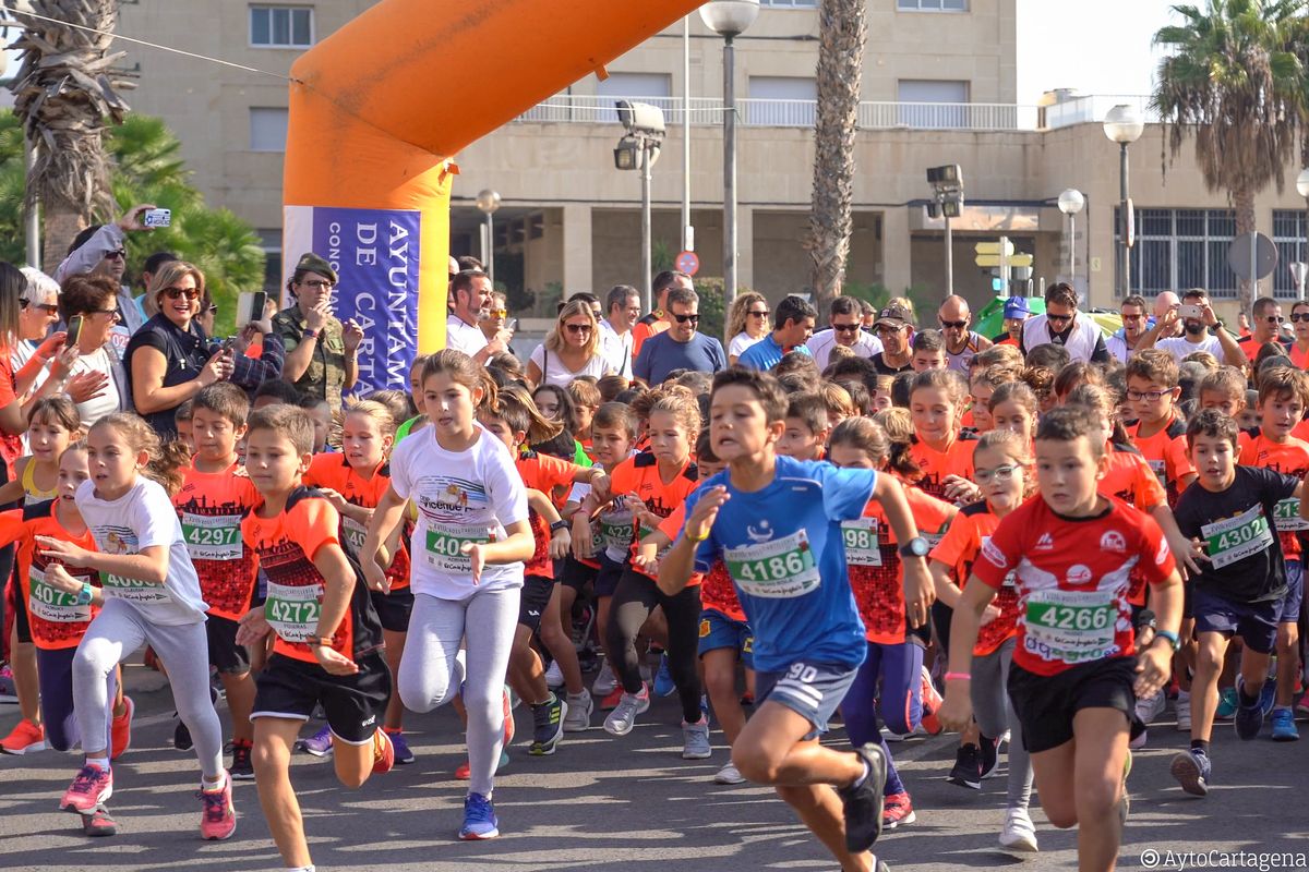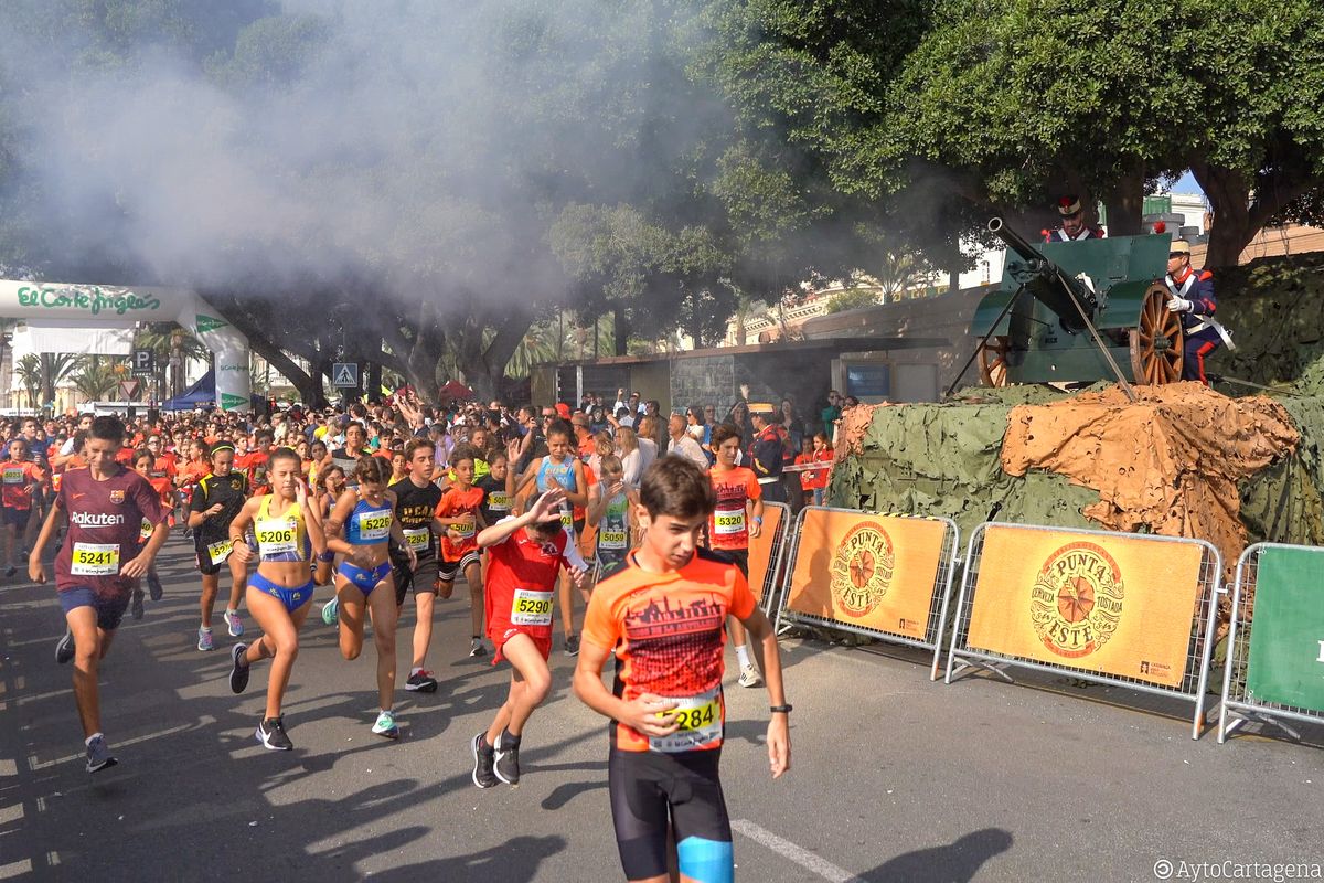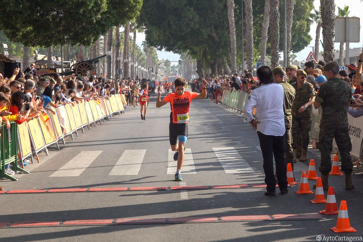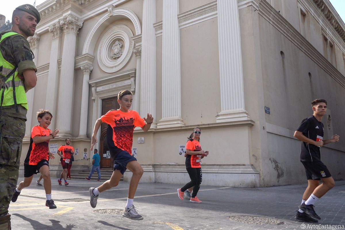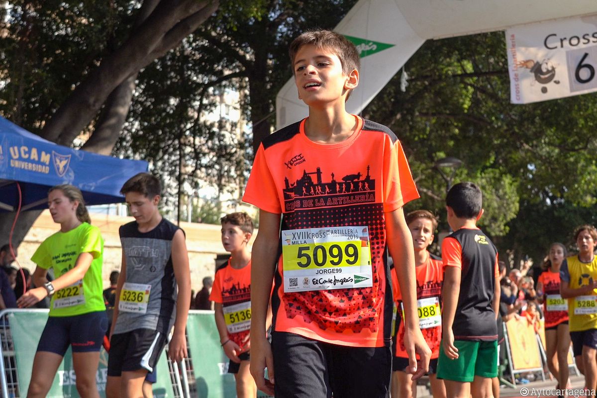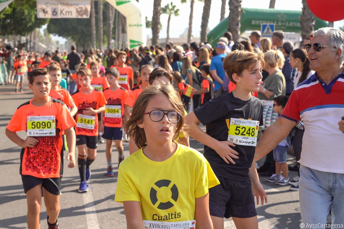 Atletas de todas las edades, niños y mayores, llenaron las calles de Cartagena este domingo 27 de octubre para participar en el XVIII Cross de la Artillería, con un gran ambiente que consiguió congregar a más de 3.500 corredores entre todas sus categorías.