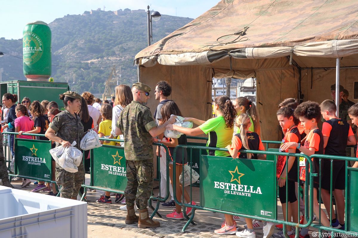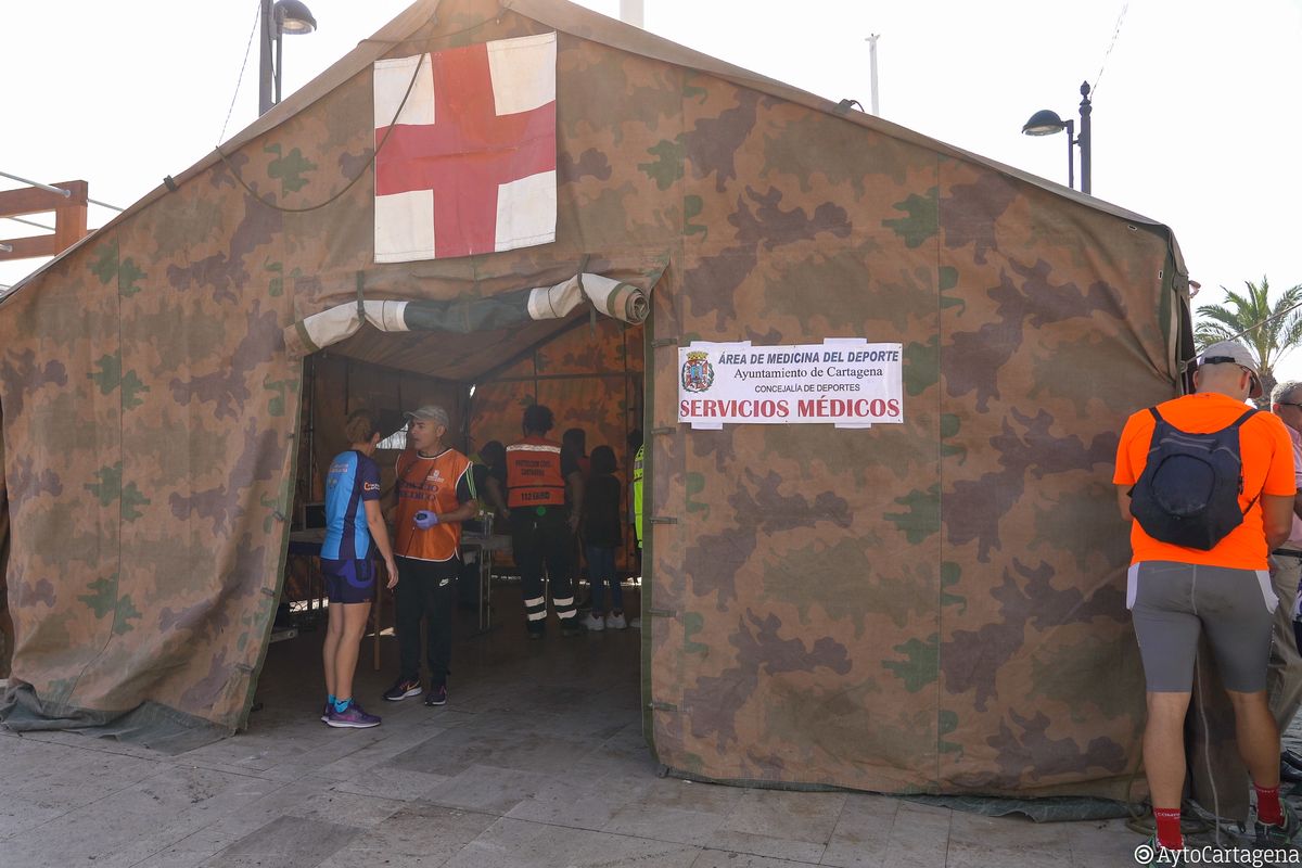 El personal del Regimiento de Artillería Antiaérea nº 73 preparaba en el puerto de Cartagena las tareas de montaje de toda la infraestructura necesaria con la colaboración de la Concejalía de Deportes del Ayuntamiento que permitió el correcto desarrollo de las pruebas con salida en este punto con más de 200 efectivos, tanto militares, como equipo médico, policía local, Protección Civil, Guardia Civil y miembros de la asociación Prolam-Astus.