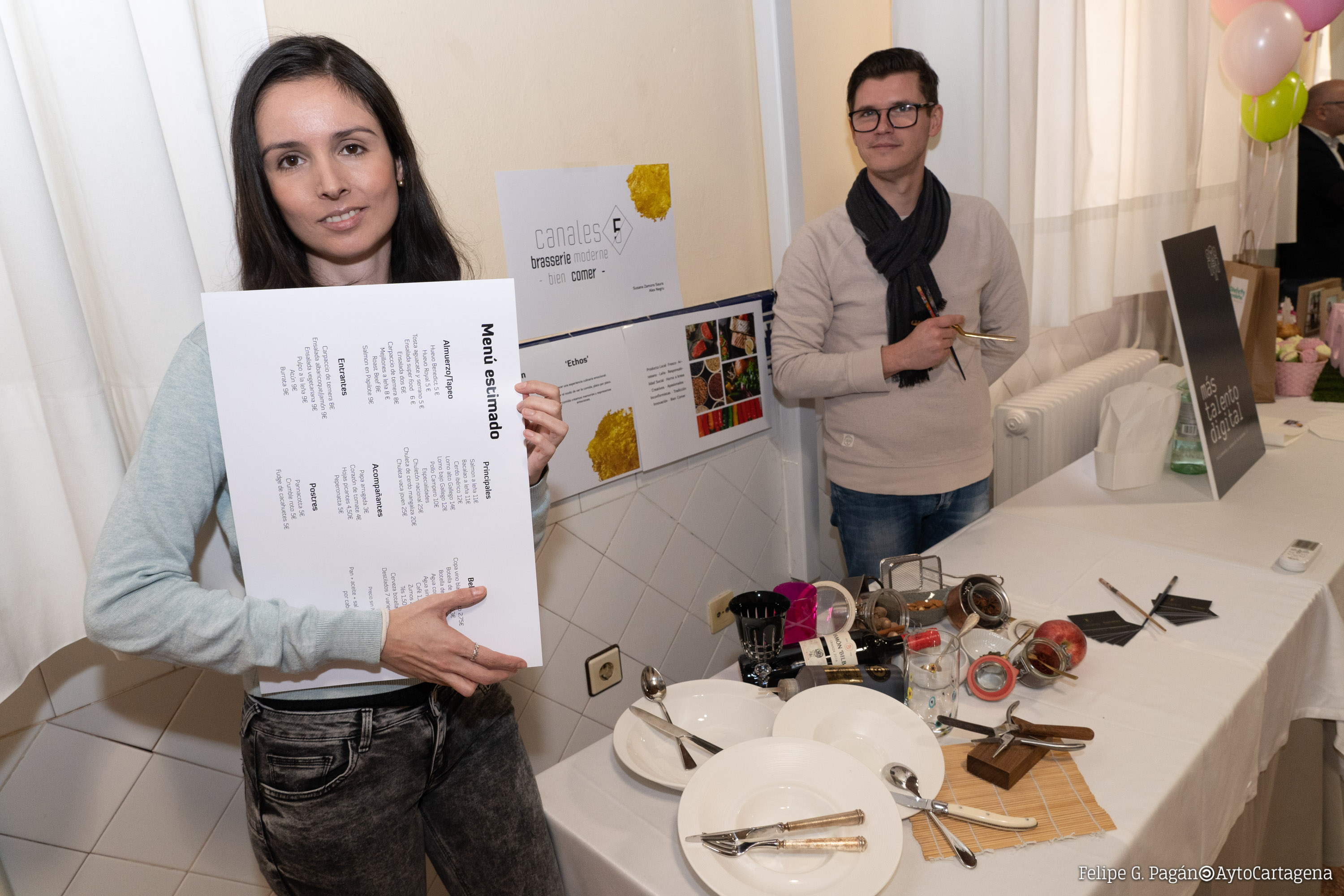 Susana Zamora y Alex Negru, dos nuevos empresarios que van montar una brasería llamada 'Canales 5', que contará con un menú de carnes y pescados que cambiará cada 6 o 8 semanas, han afirmado que "queremos ofrecer algo diferente al mercado gastronómico de Cartagena y creemos que es una buena oportunidad para nuestro negocio". Además, han explicado que el programa Generación Emprendedora "nos muestra como está el mercado y nos proporciona herramientas para organizar y poner en marcha nuestras ideas".