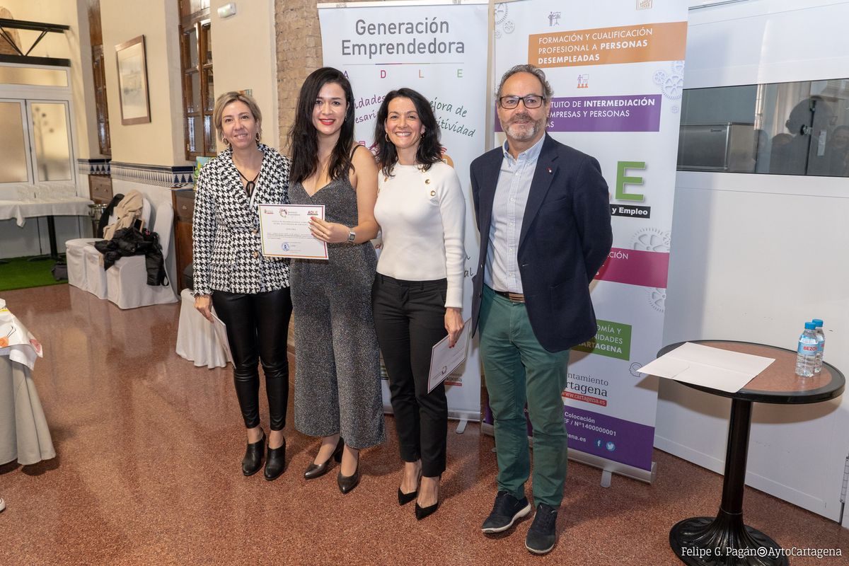 El acto ha contado con la asistencia de la concejala de Empleo y Empresa y presidenta de la ADLE, Irene Ruiz, la edil delegada, Cristina Pérez y el gerente de la ADLE, Fulgencio Cerón, quienes han sido los encargados de entregar los diplomas a los participantes de esta promoción.