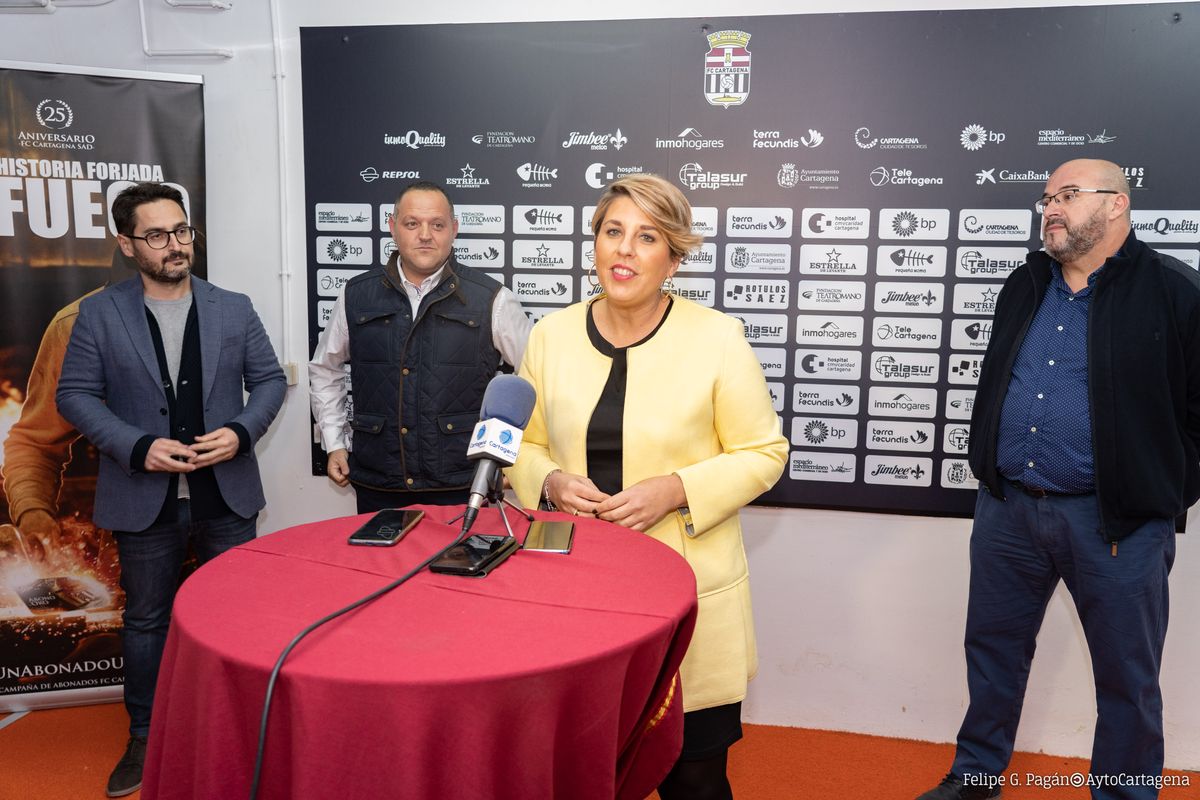 El evento contó con la presencia de la vicealcaldesa y concejala del Área de Deportes, Noelia Arroyo, con motivo del apoyo del Ayuntamiento y colaboración con el club, acompañada del presidente del FC Cartagena, Paco Belmonte, y al presidente de los peñistas, Miguel Ángel Muñoz.