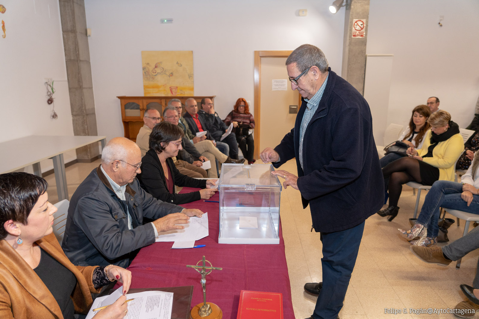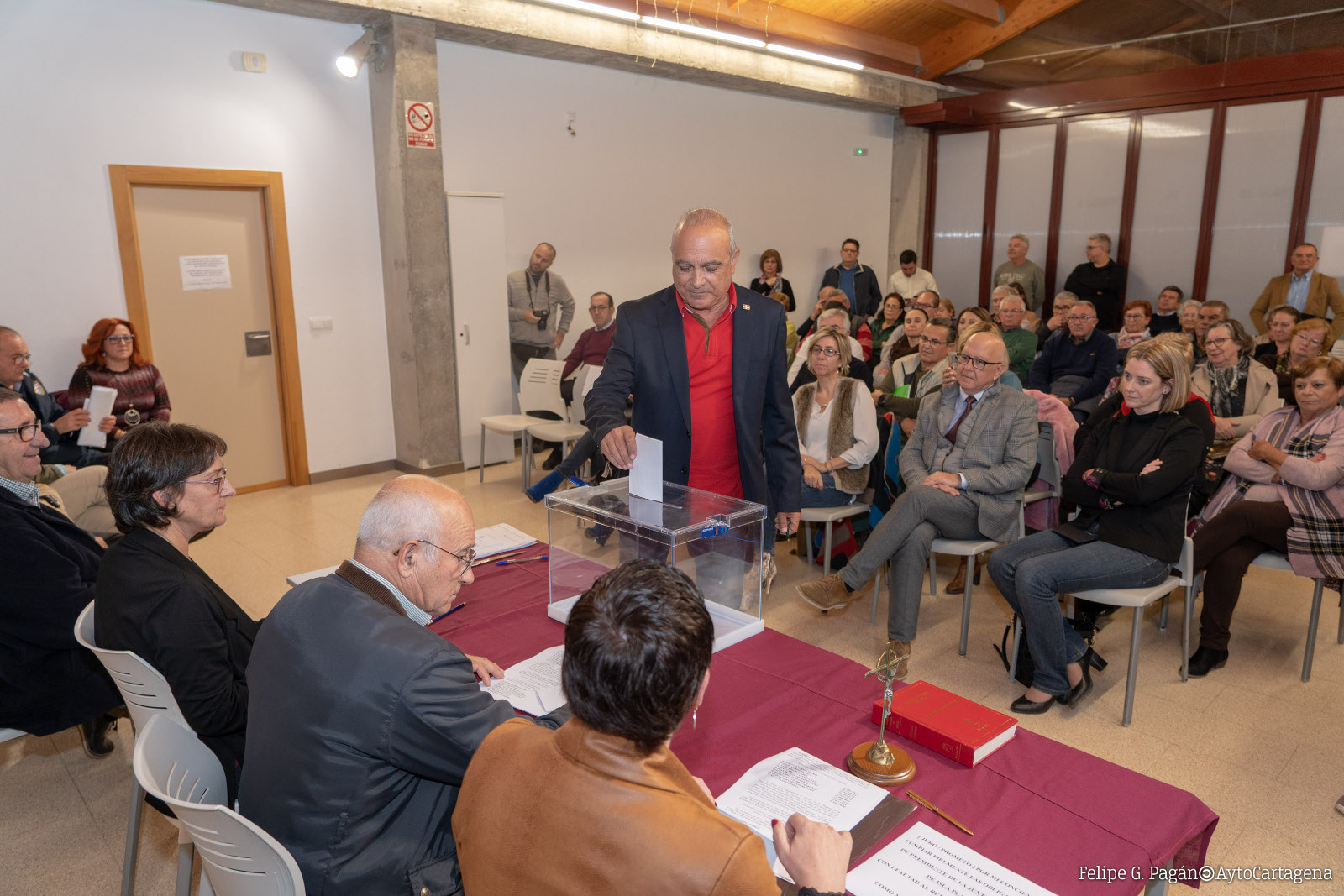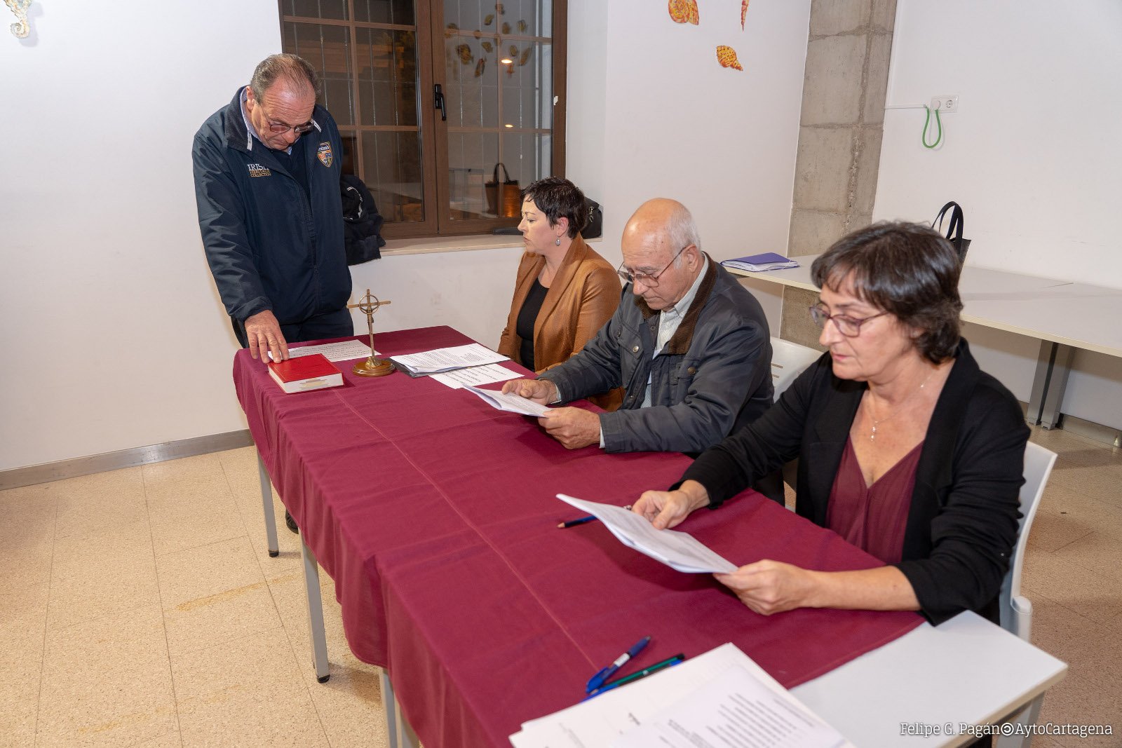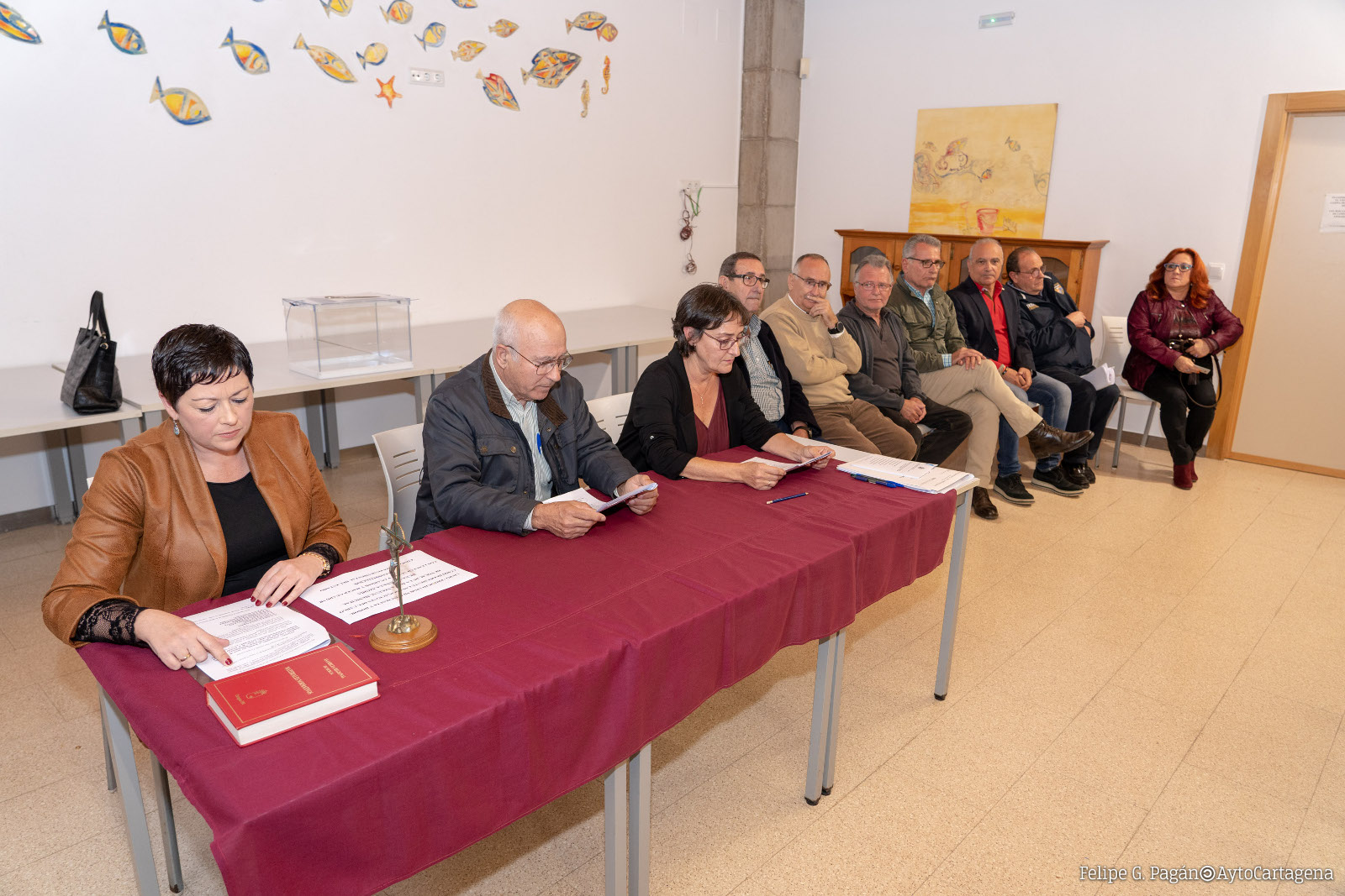 Con anterioridad a la elección de presidente, juraron o prometieron sus cargos los nueve vocales que componen esta junta vecinal. Por el Partido Popular, Evaristo Torres Torres, Ginés González Cava y Luis Lozano Uribes; por el PSOE, Juan Carlos Casanova Raja y Juan Manuel González Saura; por Ciudadanos, María Dolores Díaz Ferrer; por MC Cartagena, Pedro Ginés Celdrán Martínez; por Vox, Luis Javier Carles Hernández; y por Unidas Podemos IU Equo, María Luisa Reyes Costa.