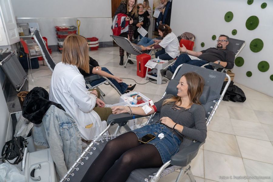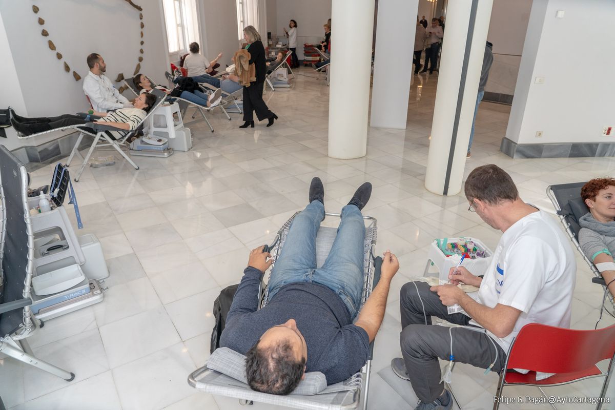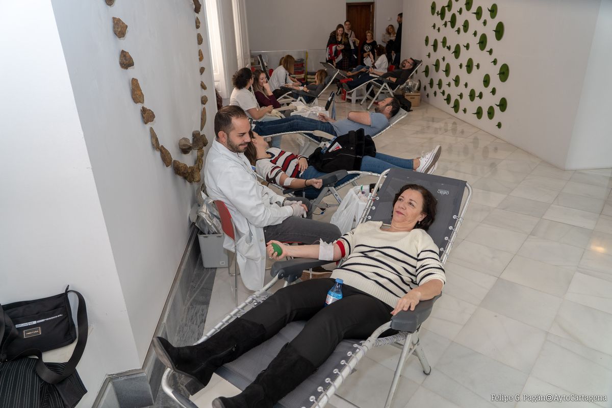 Bajo el lema 'Estás a un paso de salvar tres vidas', el Palacio Consistorial se convirtió ayer en la sede del ya tradicional Maratón de donación de sangre organizado por Cadena SER y el Centro Regional de Hemodonación junto al Ayuntamiento de Cartagena, y que este año cumple su XII edición.