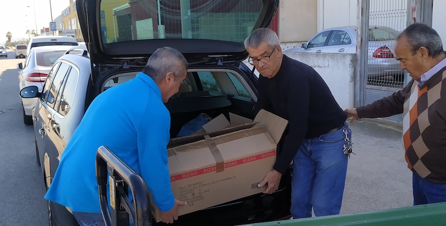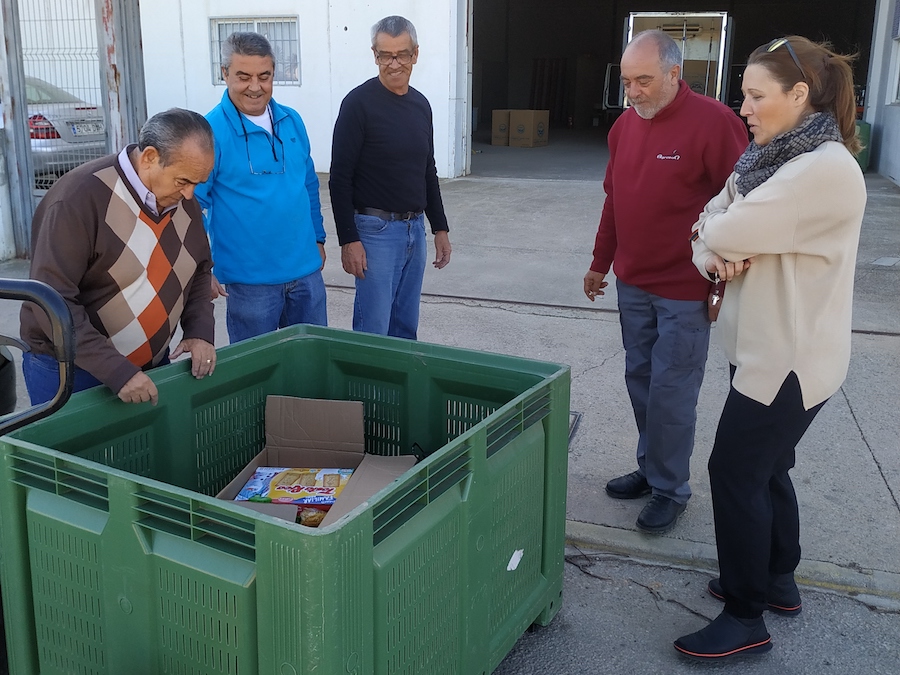 La nave de la organización en el polígono industrial de La Palma ha recogido los alimentos donados por la formación socialista, que han sido entregados por Lourdes Retuerto, presidenta de la gestora de la formación en el municipio y recientemente elegida secretaria general de la agrupación de Cartagena Centro Levante.