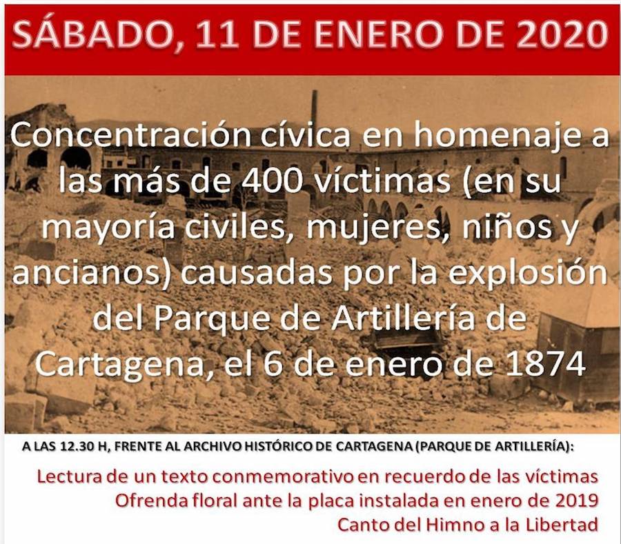 Este 6 de enero se han cumplido 146 años de la masiva cifra de fallecidos que generó la explosión del Parque de Artillería de Cartagena, como consecuencia del asedio militar de la ciudad por las fuerzas centralistas, en lo que ha sido la mayor tragedia civil de la historia contemporánea española.
