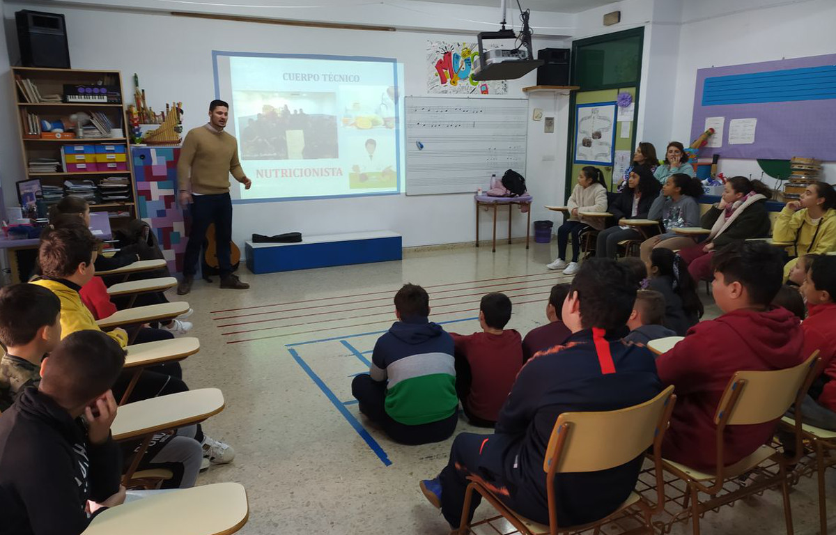 La concejalía de Deportes ha organizado, a través de su programa ADE de acercamiento al Deporte de Élite (ADE), una visita a los alumnos de sexto de Primaria a cargo del dietista-nutricionista clínico deportivo, Víctor Serrano, en una jornada sobre alimentación saludable y deporte.