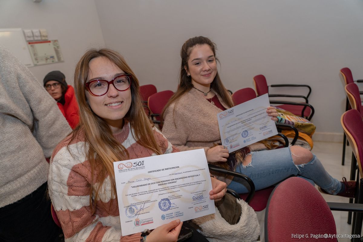 Este martes se ha hecho entrega de los certificados del curso 'Voluntariado en 0cio con personas con discapacidad intelectual y parálisis cerebral' de la Fundación SOI (Servicio de Ocio Inclusivo), que han finalizado 28 alumnos de los 36 inscritos y actualmente 4 de ellos ya son voluntarios del fundación.