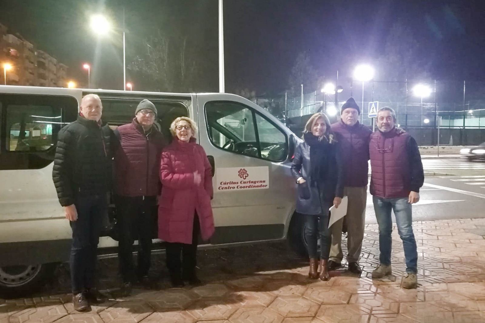 La concejala de Servicios Sociales, Mercedes García, acompañó durante la noche de este jueves a técnicos de este servicio municipal y a un grupo de voluntarios de Cáritas Cartagena.