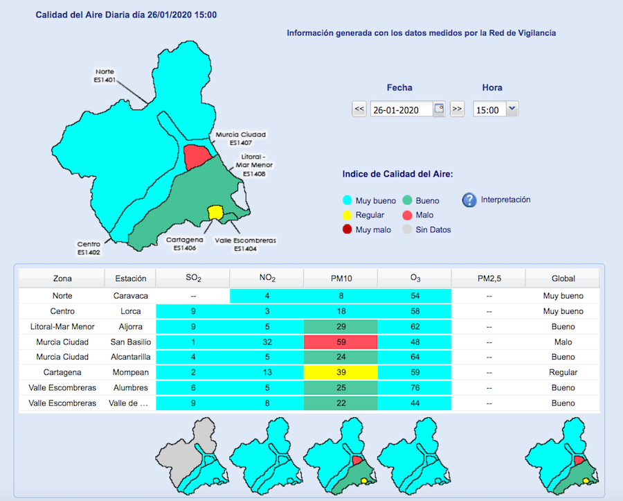 Sin embargo se mantiene el nivel de alerta 2 correctivo en La Aljorra y Santa Lucía (Puente de Mompeán) al contabilizarse en estos dos puntos valores superiores a los 50 microgramos por metro cúbico de aire.