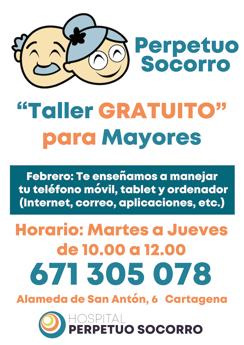 El hospital Perpetuo Socorro de Cartagena presenta el programa de envejecimiento activo que se inicia con unos talleres gratuitos para mayores. Las actividades están recogidas dentro de las actuaciones de responsabilidad social del centro y este mes de febrero se desarrollarán en torno al manejo de dispositivos como el móvil, tablet y ordenador.