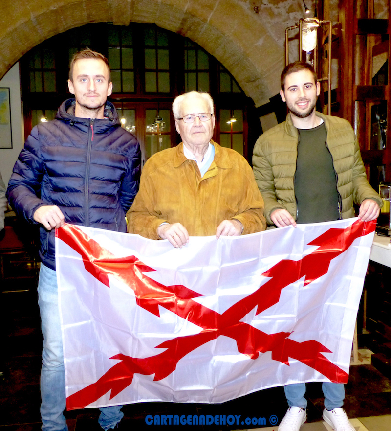 Una foto del colectivo que preside Tomás Martínez Pagán junto a invitados y con la bandera de la cruz de Borgoña cerró este estreno, que duró poco más de media hora y que resultó ágil y ameno.