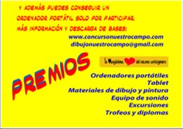 Los participantes optan a interesantes premios que van desde ordenadores portátiles, tablets, materiales de dibujo, pintura y manualidades, equipos de sonido hasta excursiones, además de trofeos y diplomas.