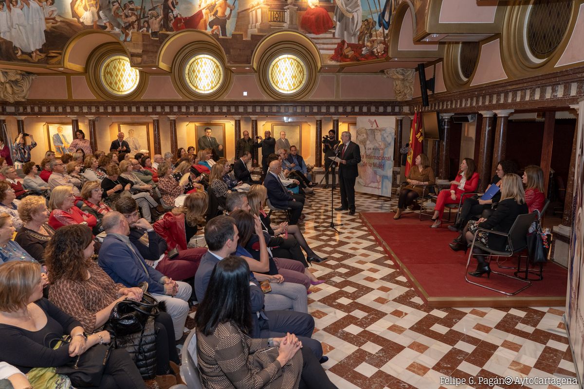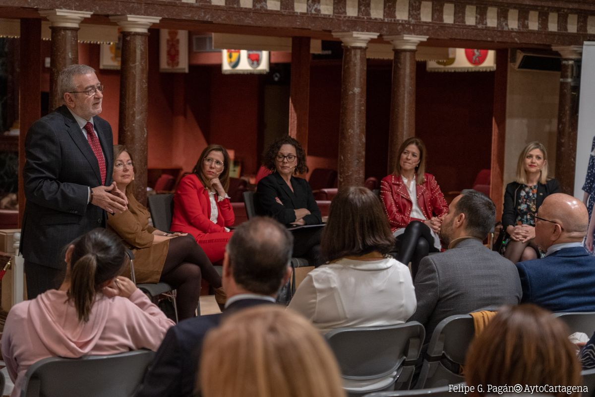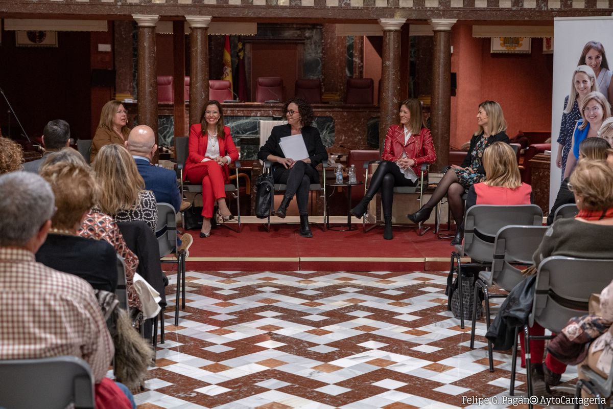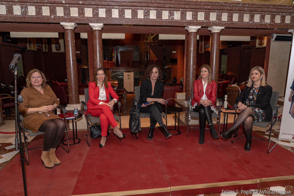 La alcaldesa de Cartagena, Ana Belén Castejón, junto a las primeras autoriades de Águilas, Mari Carmen Moreno, y de San Pedro del Pinatar, Visitación Martínez; y la teniente de alcalde del Ayuntamiento de Murcia, Paqui Pérez, ha participado en una mesa redonda organizada cen la Asamblea Regional con motivo del 'Día internacional de la mujer' y que estuvo presidida por la delegada de EFE en la Región de Murcia, Celia Cantero.Las tres alcaldesas contaron sus experiencias como primeras ediles de sus municipios, y expusieron su punto de vista sobre la realidad derivada del hecho de que el 33,3% de las máximas representantes de los municipios de la Región de Murcia sean mujeres. Todas coincidieron en que la gestión de los municipios se basa en dos cualidades básicas para gobernar como son la aptitud y la actitud, y no en en función de si el alcalde es hombre o mujer.