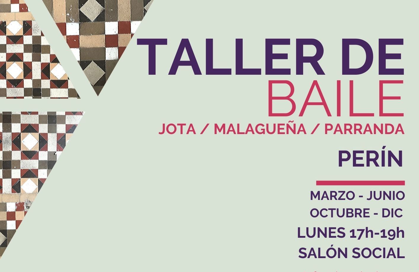 El taller de baile de Perín abarcará la jota, la malagueña y la parranda, y está organizado por la Cuadrilla de Tallante y el Grupo Musical Perín Acueducto de marzo a junio, y de octubre a diciembre, los lunes de 17:00 a 19:00 horas en el Salón Social. Las inscripciones han de realizarse a través del teléfono 644207801.