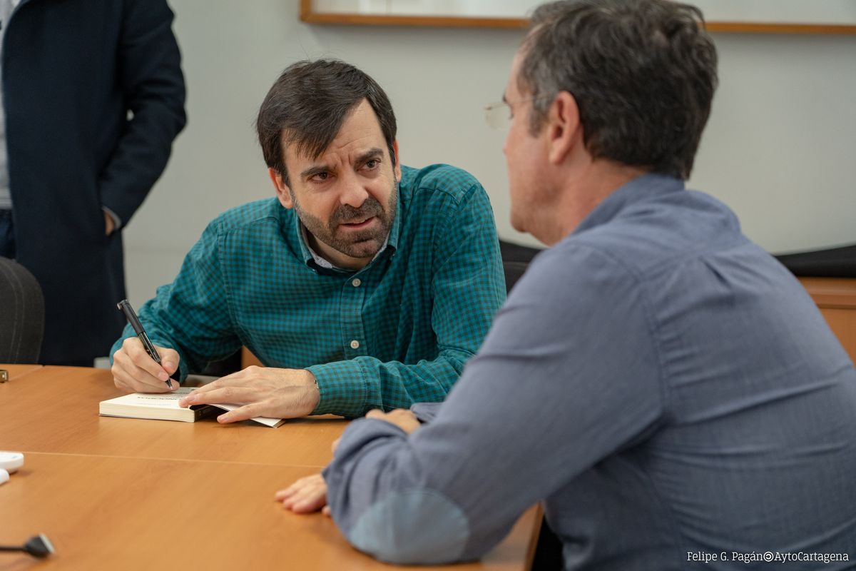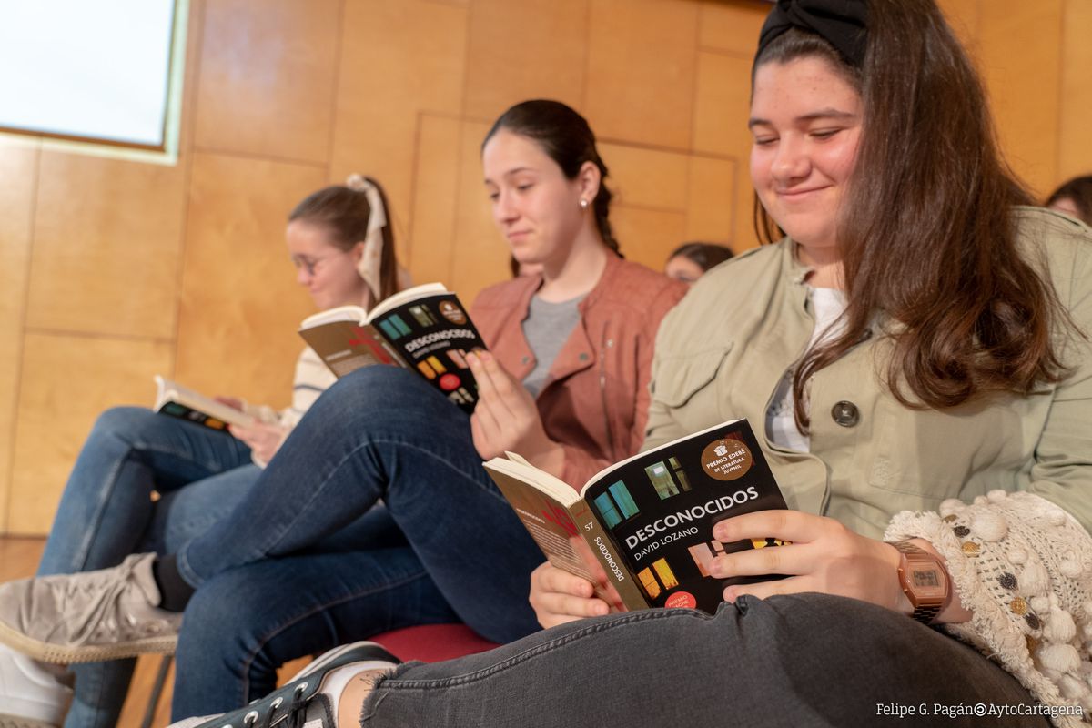 Esta es la segunda ocasión en que David Lozano Garbala visita Cartagena como candidato al Premio Hache, del que ya fue finalista en 2015 con su novela Herejía. Este escritor zaragozano de literatura juvenil ha cosechado importantes premios como el Gran Angular en 2006 o el Premio Edebé en 2018, el cual ganó precisamente con Desconocidos, la novela de suspense con la que concursa en el Premio Hache.