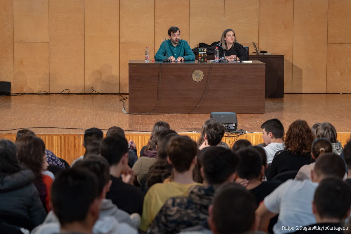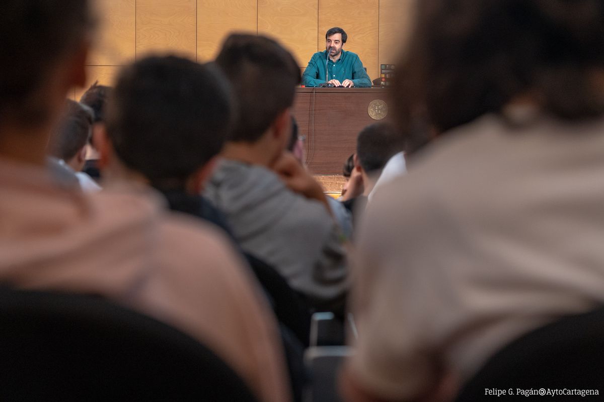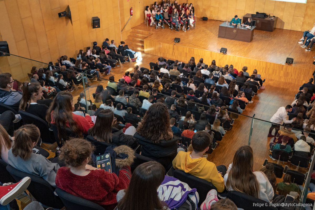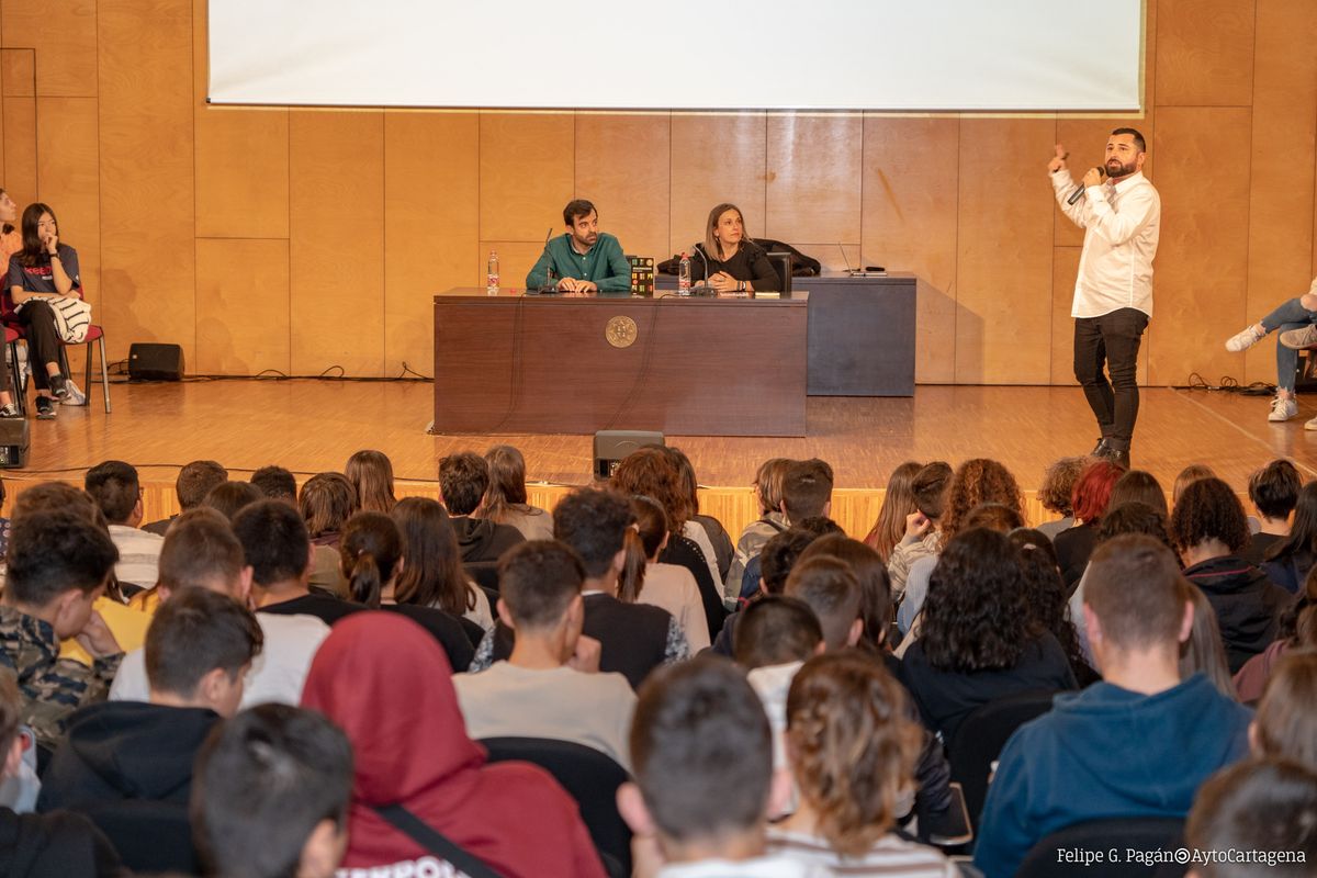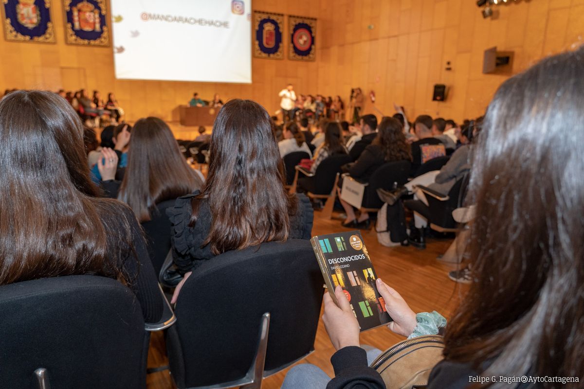 El escritor ha comenzado su visita a Cartagena con una presentación de su libro ante 600 jóvenes estudiantes, a los que ha planteado algunas cuestiones relacionadas con el libro cómo los peligros de acudir a una cita con una persona a la que se conoce a través de internet y los riesgos de las redes sociales. A través de este encuentro los alumnos han podido conocer de cerca al autor y plantear sus dudas sobre la novela.