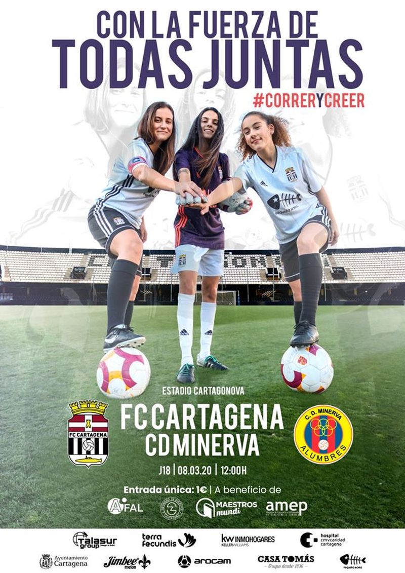El FC Cartagena, junto con su Fundación y con la colaboración del Ayuntamiento de Cartagena ,se suma así a la expansión y crecimiento del fútbol femenino y juega el partido correspondiente a la 18ª jornada de la Liga Autonómica Preferente contra el CD Minerva en el Estadio Cartagonova, a las 12:00 horas. Se trata de la primera vez que el equipo femenino del FC Cartagena disputa un encuentro oficial en el Municipal.