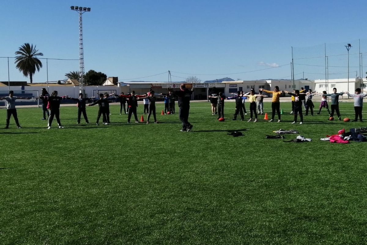 El campo de fútbol municipal de la localidad galilea ha sido el lugar de encuentro donde alumnos de Primaria han participado en una jornada desarrollada por técnicos y jugadores del equipo sénior del Club Rugby Universitario Cartagena, en una actividad organizada por el Programa ADE de la concejalia de Deportes.Los escolares han realizado la actividad en el nuevo campo de cesped artificial de la localidad que se encuentra junto al centro educativo. Tras una breve introducción teórica sobre el rugby en el apartado de sus normas, así como aspectos técnicos básicos y sobre todo los valores que transmite este deporte.