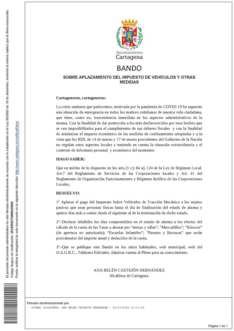 Por su parte, la concejala de Hacienda, Esperanza Nieto, ha anunciado incentivos y ayudas fiscales para autónomos, pymes y familias, entre las que se incluye la ampliación del plazo del pago del impuesto de vehículos hasta 15 días después de que finalice el estado de alarma, como ha establecido un bando firmado hoy por la alcaldesa..
