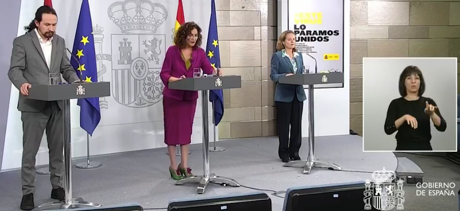 El Consejo de Ministros, en reunión mantenida hoy, ha aprobado un decreto con un extenso paquete de medidas para, entre otros, ayudar a colectivos vulnerables y mantener el tejido productivo, según han indicado en rueda de prensa, que se puede escuchar de forma íntegra pinchando la imagen adjunta. Entre otras medidas incluye: