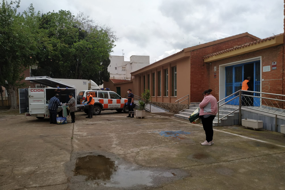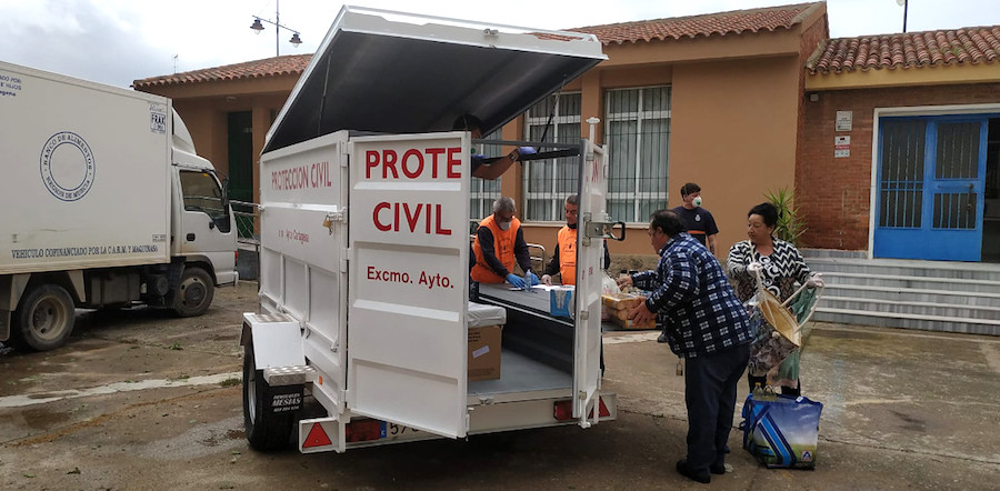Así, hoy, una furgoneta de Protección Civil se ha desplazado hasta el barrio de Santa Lucía, donde ha repartido cajas de productos de primera necesidad a diez familias.Aunque la mayor parte del reparto se hace directamente en los domicilios de los vecinos, en algunos casos, cuando esto no es posible, se habilitan puntos de distribución, como en el caso de Santa Lucía, donde se ha elegido la sede de la Federación de Asociaciones de Vecinos.
