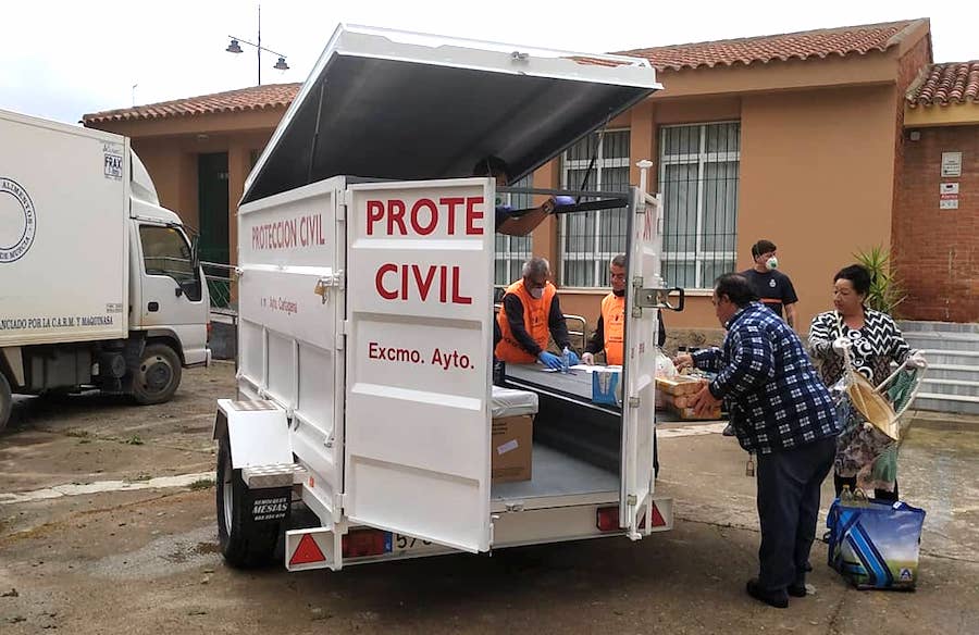 La Federación de Asociaciones de Vecinos de Cartagena y Comarca junto con el Ayuntamiento de Cartagena, Protección civil y el Banco de Alimentos colaboran en el reparto de productos básicas para familias necesitadas y hoy han llevado alimentos a la sede de la Favcac para distribuir en su entorno.