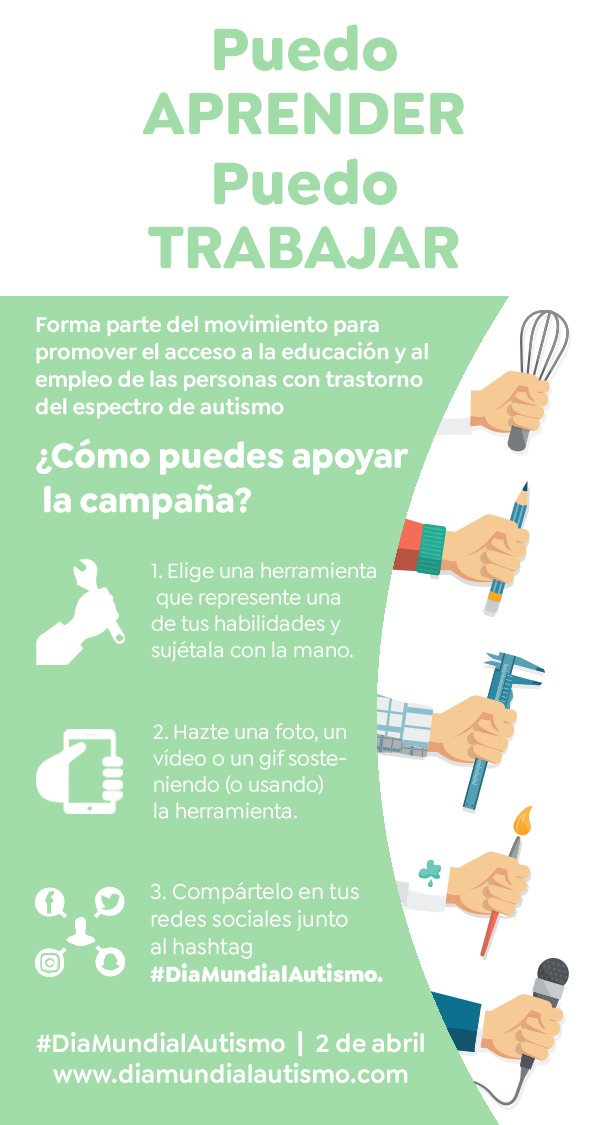 Así, lo que se busca es alentar un cambio positivo en estas áreas de la vida: la educación y el empleo, y para apoyar este objetivo, tan solo hay que compartir a través de las redes sociales una foto, un vídeo o un gif haciendo el gesto de la campaña, junto al hashtag #DiaMundialAutismo.