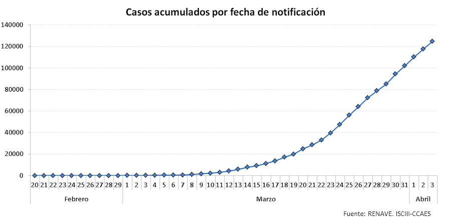 Casos totales: 124.736. Últimas 24 horas: 7.026. Recuperados: 34.219. Hospitalizados: 57.612. Fallecidos: 11.744. Son los últimos datos del efecto de la pandemia del coronavirus en España. Las nuevas cifras suponen que el total de casos ha aumentado en 7.026 casos en las últimas 24 horas. Se elevan también en 3.706 los recuperados y en 809 los fallecidos, cifra inferior a la de días precedentes.