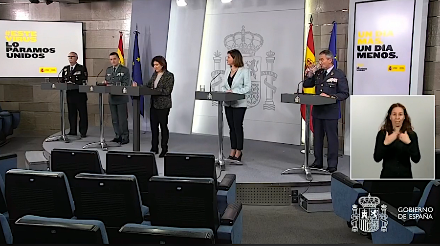 Los técnicos responsables de los ministerios de Sanidad, Defensa, Interior y Transportes, Movilidad y Agenda Urbana han comparecido en rueda de prensa, como cada día, tras la reunión del Comité de Gestión Técnica del #COVID19 liderada por el presidente del Gobierno.