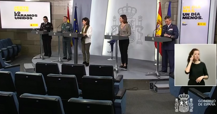 Antes, los técnicos responsables de los ministerios de Sanidad, Defensa, Interior y Transportes, Movilidad y Agenda Urbana han comparecido en rueda de prensa, como cada día, tras la reunión del Comité de Gestión Técnica del Covid-19 liderada por el presidente del Gobierno.