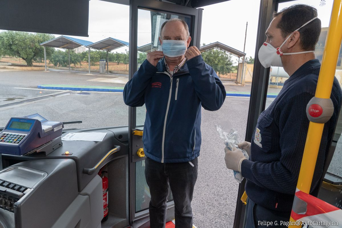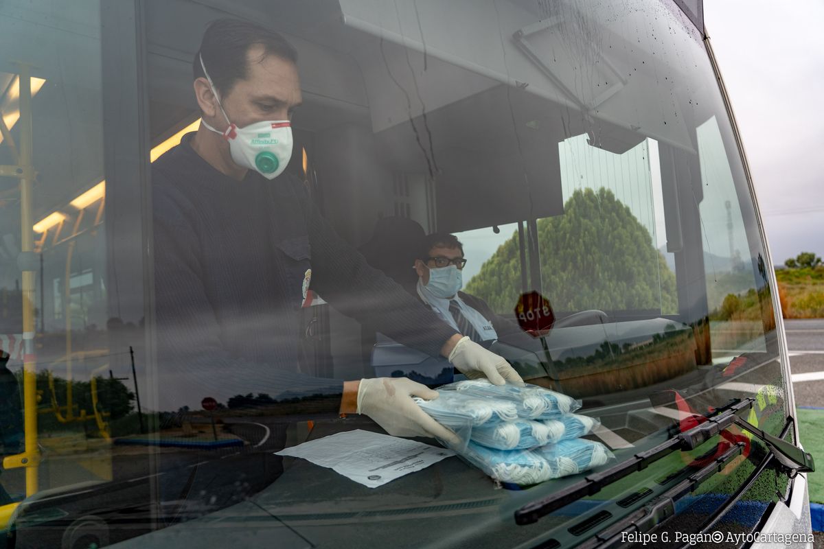 Además de en los autobuses, tanto Guardia Civil como Policía Nacional han entregado las mascarillas en el acceso a Navantia, al Valle de Escombreras y a los polígonos industriales con la intención de dar cobertura al mayor número de trabajadores posible.
