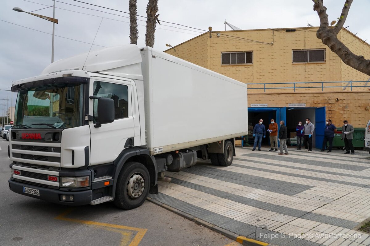La entrega de productos se ha realizado hoy 16 de abril de 2020 en el Pabellón Central de Cartagena.