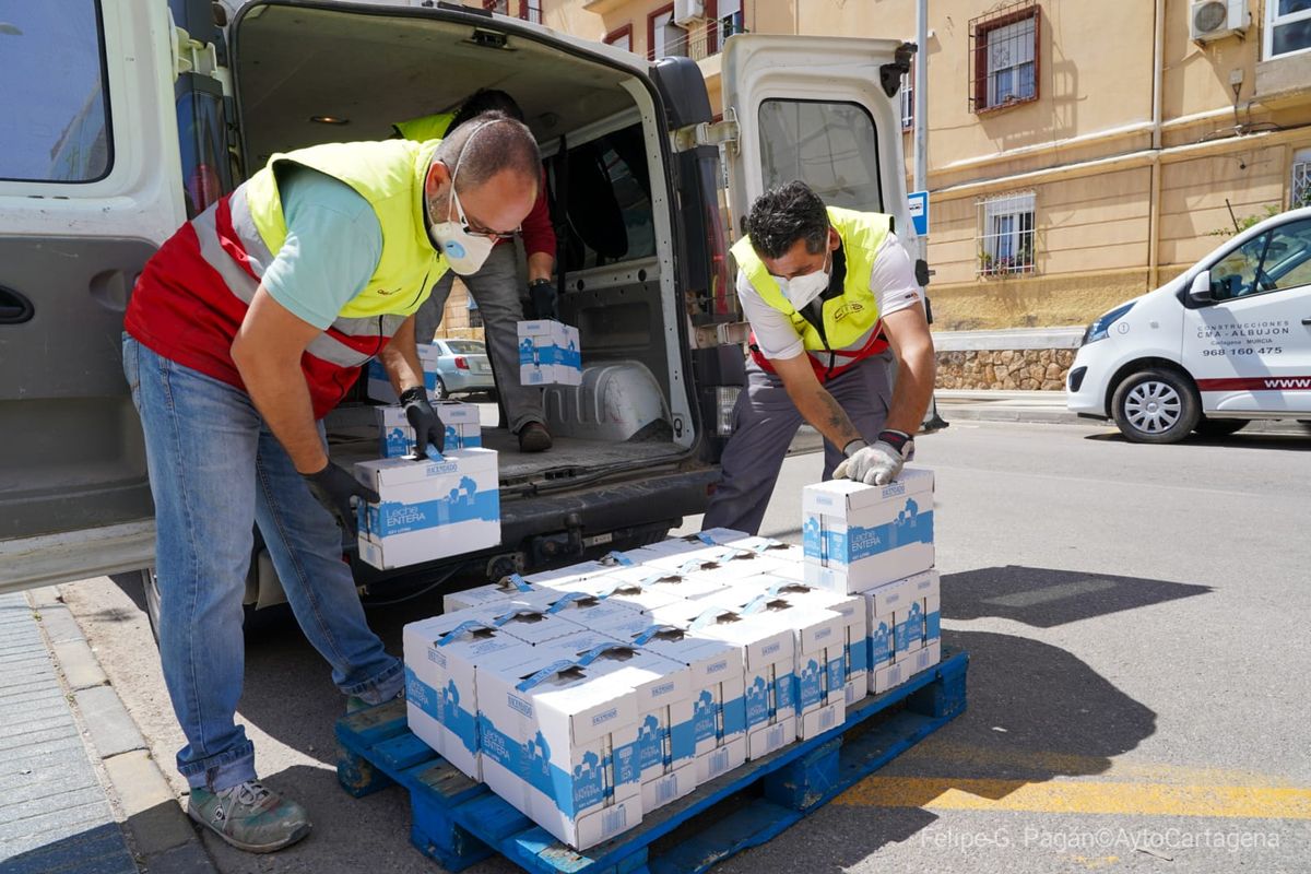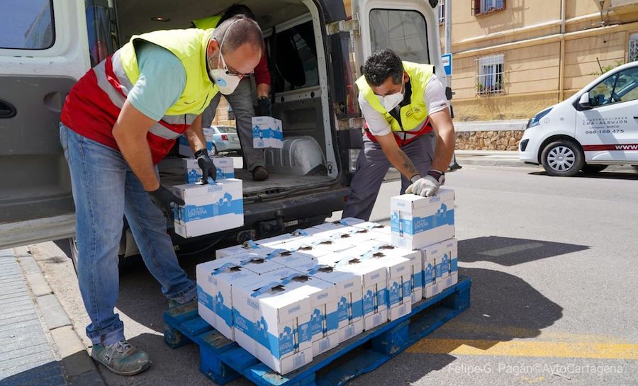 Así, CMA Albujón ha aportado en la mañana de hoy, lunes 20 de abril, más de 2.000 kilos de alimentos de primera necesidad, tales como leche, arroz, zumos o magdalenas.