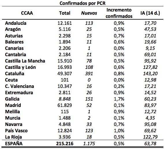 Se le ha preguntado por el motivo en el que aparecen más nuevos casos de sanitarios infectados (1.247) que nuevos contagiados (1.175). Ha tratado de explicarlo diciendo que no son nuevos casos, sino que reprsentan en parte a antiguos casos detectados ahora o de los que han tenido una persitencia breve del virus.