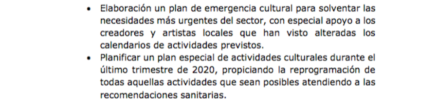 Entre las 25 medidas propuestas destacan las que afectan a la bonificación del IBI para aquellos inmuebles destinados a las actividades de sectores de Ocio y Hostería y comercio que no reduzcan su plantilla en el año 2020 y mantengan el empleo. Para ello basta con la aplicación del art. 6.5.1 de la Ordenanza de este impuesto y declarar su actividad de interés municipal como están haciendo otros municipios.