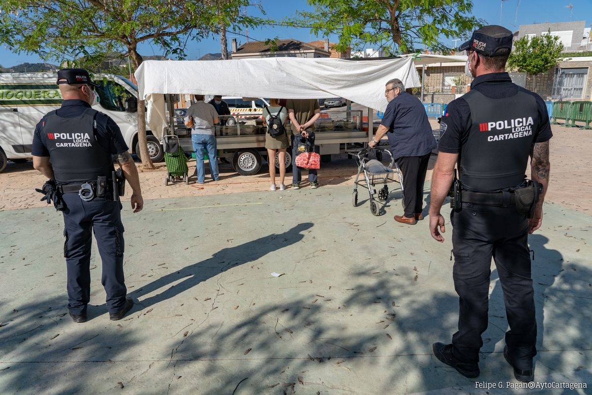 Mañana martes 12 de mayo está prevista la apertura del mercado de Los Belones, el miércoles el mercado de Cartagena, que lo hará con sólo cuatro puestos, y posteriormente abrirán los mercadillos de Los Dolores, Urbanización Mediterráneo, El Bohío y el de Cabo de Palos, que abrirá con 27 puestos el domingo.