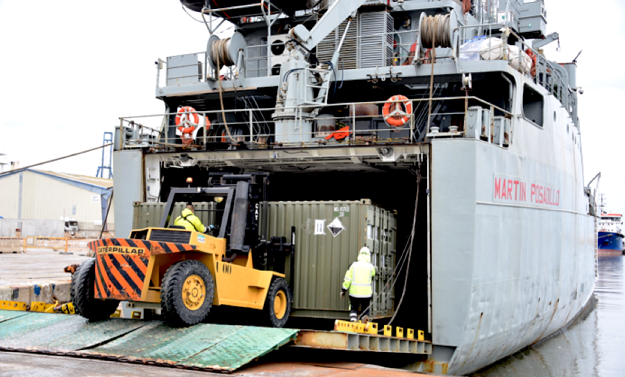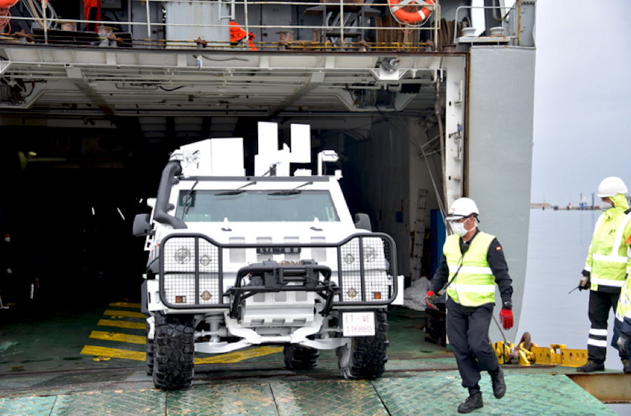 Antes de poner rumbo internacional, el ‘Martín Posadillo’ ha realizado una breve escala en el puerto de Valencia para cargar material, contenedores y vehículos que se van a proyectar para el sostenimiento de los contingentes españoles del Ejército de Tierra en Marjayún (Líbano) y Adana (Turquía), bajo rigurosas medidas de protección y desinfección sanitarias. Al finalizar, el buque se hizo a la mar en demanda del puerto de Nápoles donde está previsto que arrumbe el próximo 18 de mayo para realizar una escala logística.