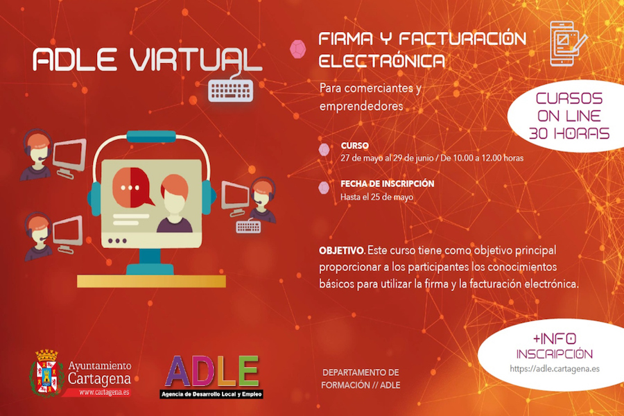 A su vez, del 27 de mayo al 39 de junio se impartirá, también de manera telemática, ‘Firma y facturación electrónica’, con el objetivo de proporcionar a los participantes los conocimientos básicos para utilizar estas herramientas electrónicas. Su plazo de inscripción está abierto hasta el lunes 25.