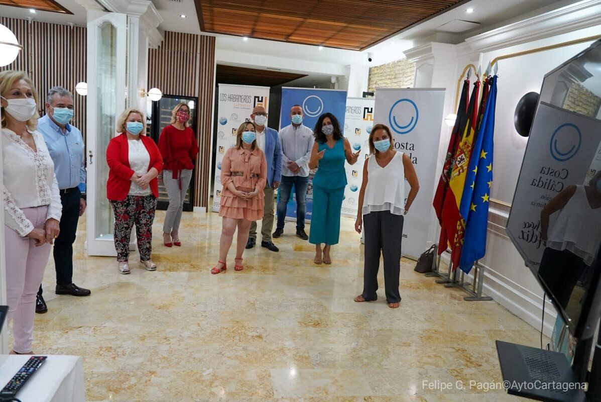 A la presentación han asistido la Consejera de Turismo, Cristina Sánchez, la Directora de Calidad y Competitividad Turística, Esther Tenza, concejal del área de Sanidad del Ayuntamiento de Cartagena, Manuel Padín y concejala de la delegación Especial de Turismo del Ayuntamiento de Cartagena, Cristina Pérez, presidente de la Agrupación de Hoteles y Establecimientos Turísticos de Cartagena y Comarca, Bartolomé Vera, la presidenta de Hostetur, Soledad Díaz, presidente de Hostecar, Juan José Escolar, vicepresidente de Hostemur, Juan Carlos García, presidenta de la Mesa del Turismo, María del Mar Martínez, presidenta de COEC, Ana Correa y técnicos de la Consejería de Turismo, Juventud y Deportes.