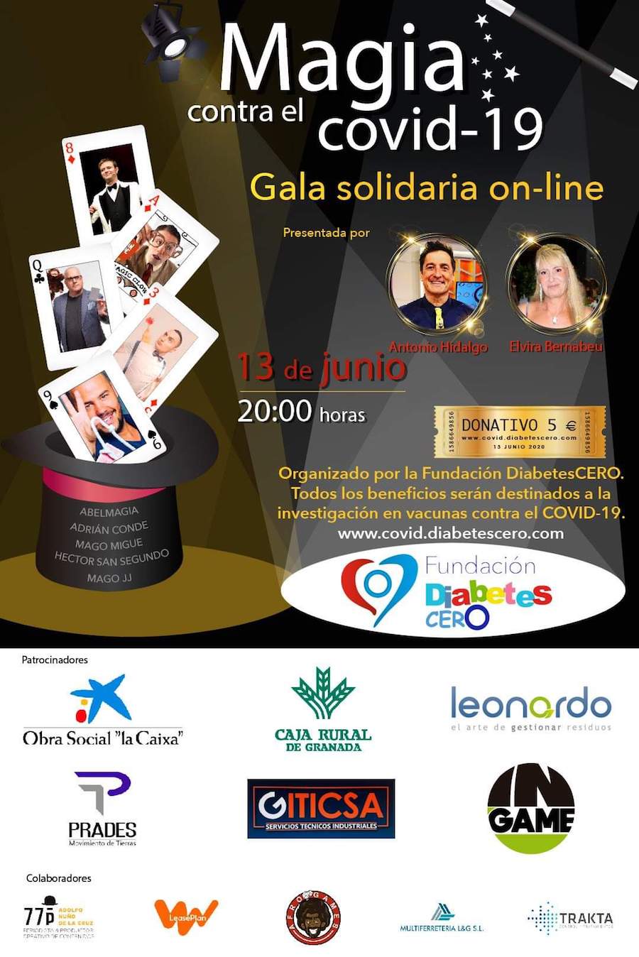 La gala solidaria tendrá lugar el 13 de junio, a las 20 horas, mediante la fórmula online y será presentada por Antonio Hidalgo y Elvira Bernabéu, contando con la participación de los magos Abelmagia, Adrián Conde, Mago Miguel, Héctor Sansegundo y Mago JJ. NOTA DE PRENSA