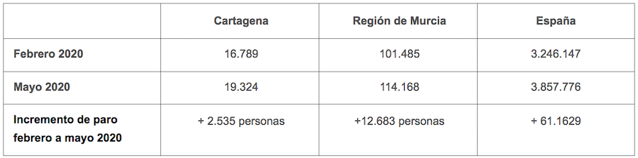 La alcaldesa y los representantes sindicales han mostrado su preocupación por el hecho de que desde el inicio de la pandemia en Cartagena se ha producido un aumento de 2.535 personas en el número de desempleados, de los cuales 1.191 son mujeres y 1.344 hombres.