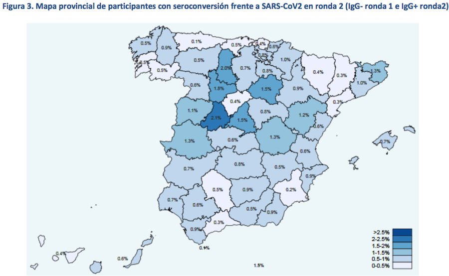 Existe un 0,8% de participantes que siendo negativos en anticuerpos en la primera ronda han seroconvertido en esta segunda, es decir, se les ha detectado la presencia de IgG de la que antes carecían. Destacan los casos de Ávila, Valladolid y Palencia, con valores cercanos al 2%, y los de Madrid, Soria y Segovia con un 1,5%.