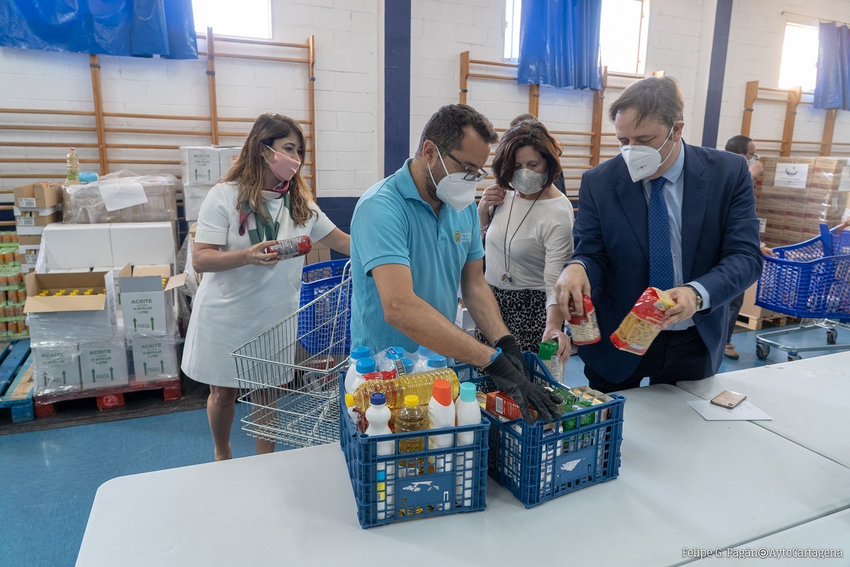 El dispositivo municipal de emergencia social se puso en marcha tras el decreto de estado de alarma por la crisis del coronavirus. Cada semana, reparte alimentos y productos de higiene personal entre 400 familias de Cartagena.