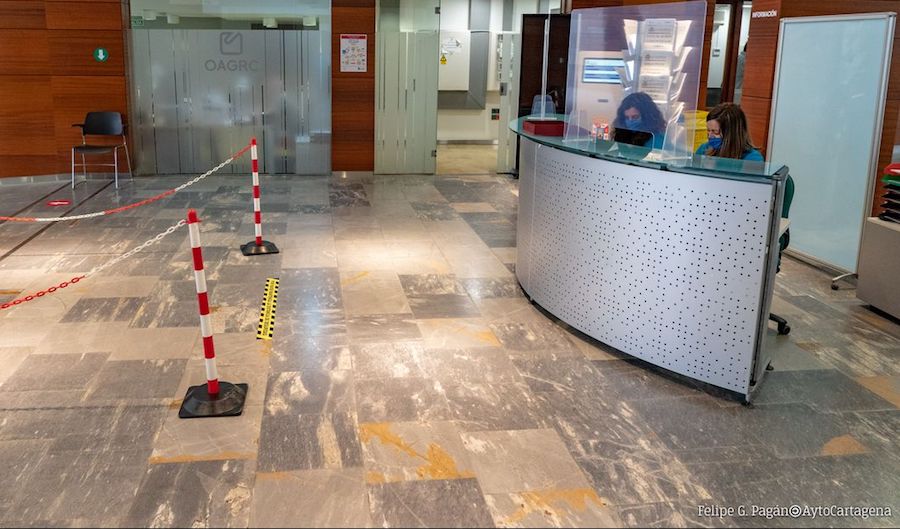 El Ayuntamiento de Cartagena abrirá por completo este lunes con la atención presencial de los funcionarios en sus dependencias. Cabe recordar que se vieron interrumpidos por la crisis sanitaria del Covid-19, excepto el servicio que se habilitó para la expedición de certificados digitales en el Registro General Municipal.Algunos de estos servicios municipales como el Organismo Autónomo de Gestión Recaudatoria ya abrió sus puertas el pasado día 1 de junio, sin cita previa, para facilitar el pago de impuestos. Los ciudadanos deberán respetar la distancia de seguridad de dos metros en los accesos e interior del edificio y cumplir con las medidas de higiene y la señalización establecida.