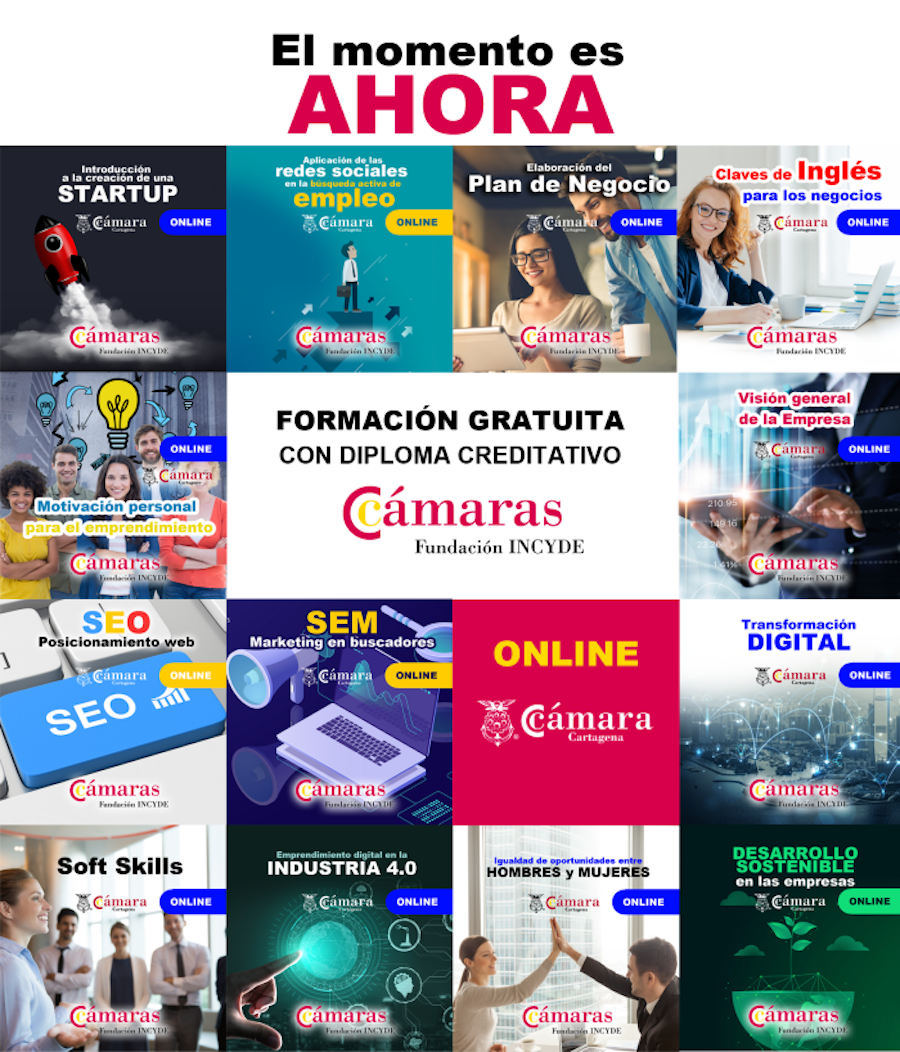 Son doce cursos que organiza la Cámara de Comercio de Cartagena en colaboración con la Fundación Incyde y el Instituto de Fomento.La matrícula se puede realizar a través del siguiente enlace: