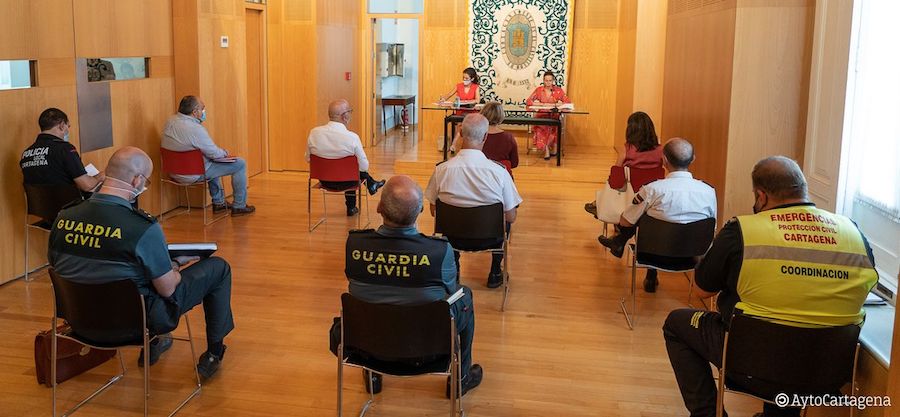 “Nos encontramos ante un verano inusual por la crisis sanitaria, que afecta tanto a la situación en nuestras playas como a la llegada de pateras, por lo que la reunión de hoy era especialmente importante para Cartagena. Hemos solicitado a la vicesecretaria general de la Delegación del Gobierno, que ponga en marcha un dispositivo especial de Guardia Civil y Policía Nacional, con un refuerzo del número de agentes, para ayudarnos a garantizar que se cumplen las normativas sanitarias de distanciamiento social obligatorio en nuestras playas, ya que el Ayuntamiento no dispone de personal suficiente para hacerlo”, ha explicado la alcaldesa, tras la Junta Local de Seguridad que se ha celebrado en el Palacio Consistorial.