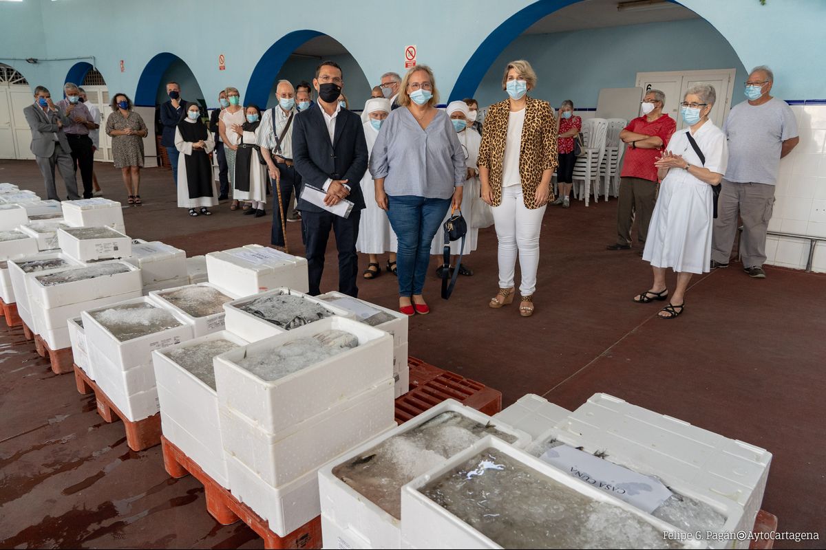 El acto ha tenido lugar en la Lonja de Pescado de Santa Lucía con la asistencia de la vicealcaldesa, Noelia Arroyo, del Patrón Mayor de la Cofradía, Bartolomé Navarro y de representantes de todas las entidades beneficiadas por los lotes de pescado.