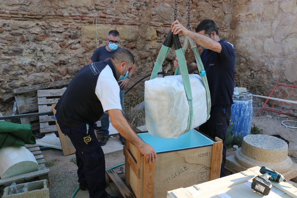 El traslado de los pedestales desde Madrid a Cartagena se ha realizado por una empresa especializada en transportes de obras de arte. A su llegada a Cartagena, han sido recepcionados por personal técnico del Ayuntamiento y del Parque Arqueológico del Molinete. En los próximos días serán sometidos a un último tratamiento conservativo y posteriormente serán colocados en los pedestales dispuestos a tal efecto en el Lapidario del referido Museo. Toda esta actuación se está llevando a cabo a través de la dirección de Proyectos Estratégicos de Patrimonio Histórico Artístico del Ayuntamiento de Cartagena.