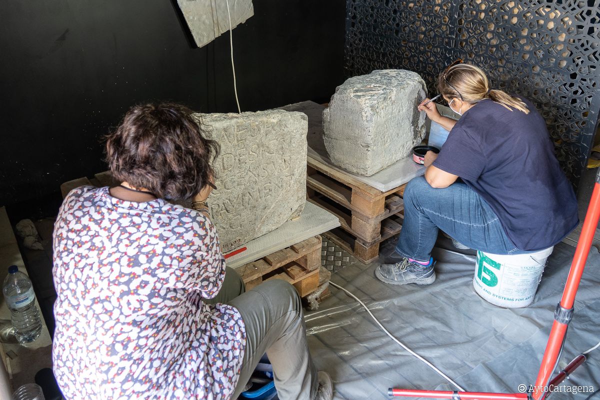 Regresan a Cartagena dos pedestales epigráficos del Foro de la Colonia Romana